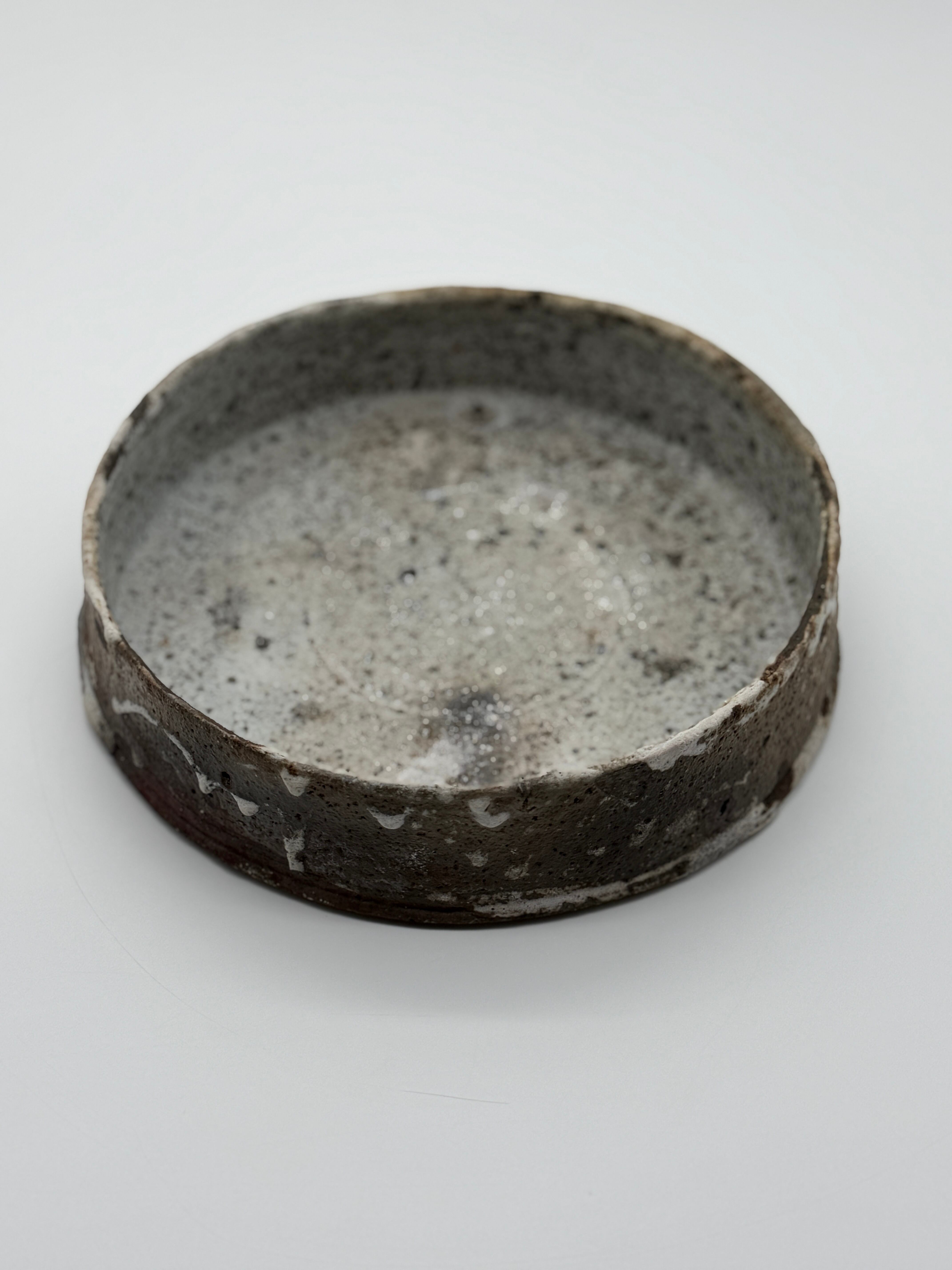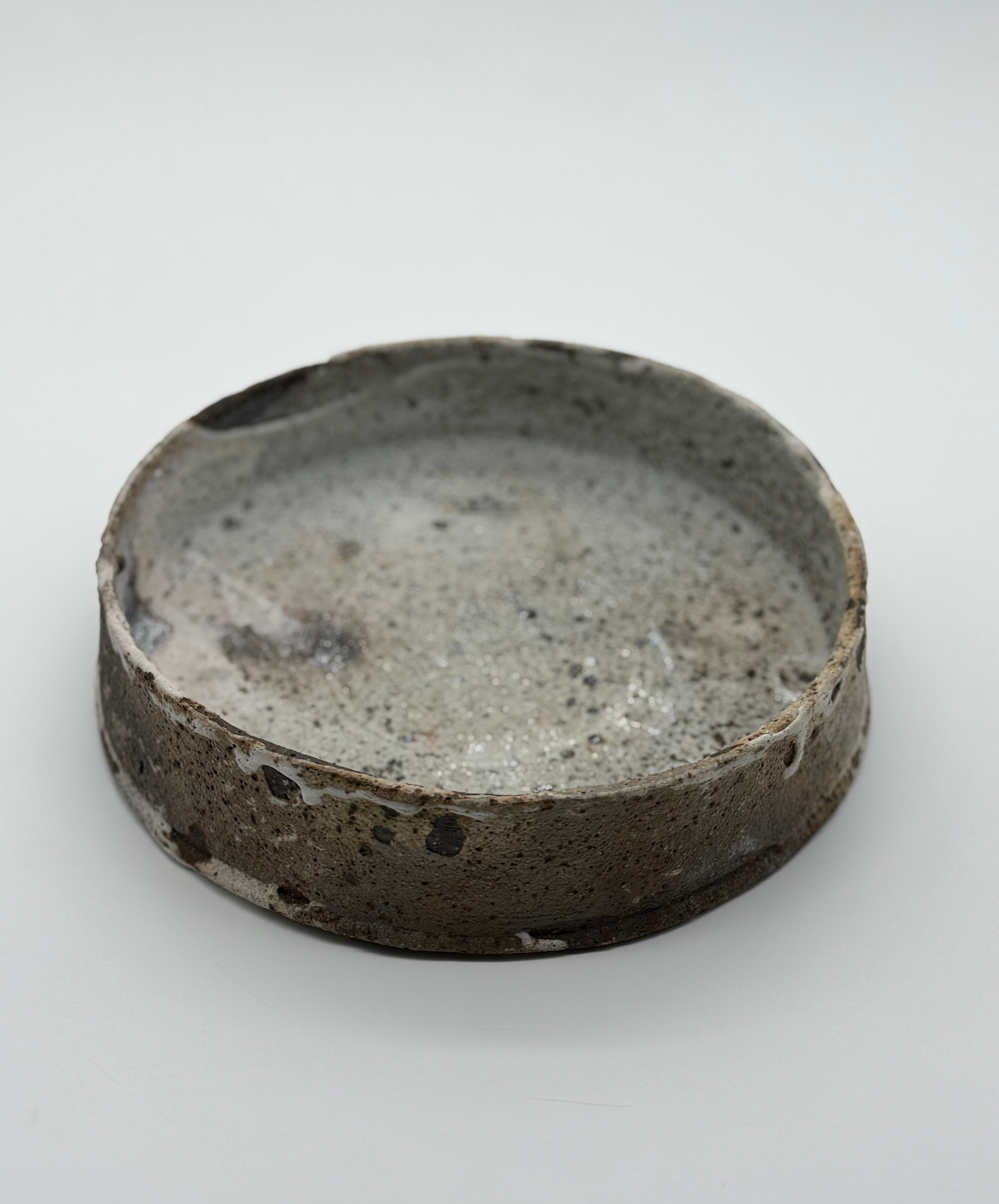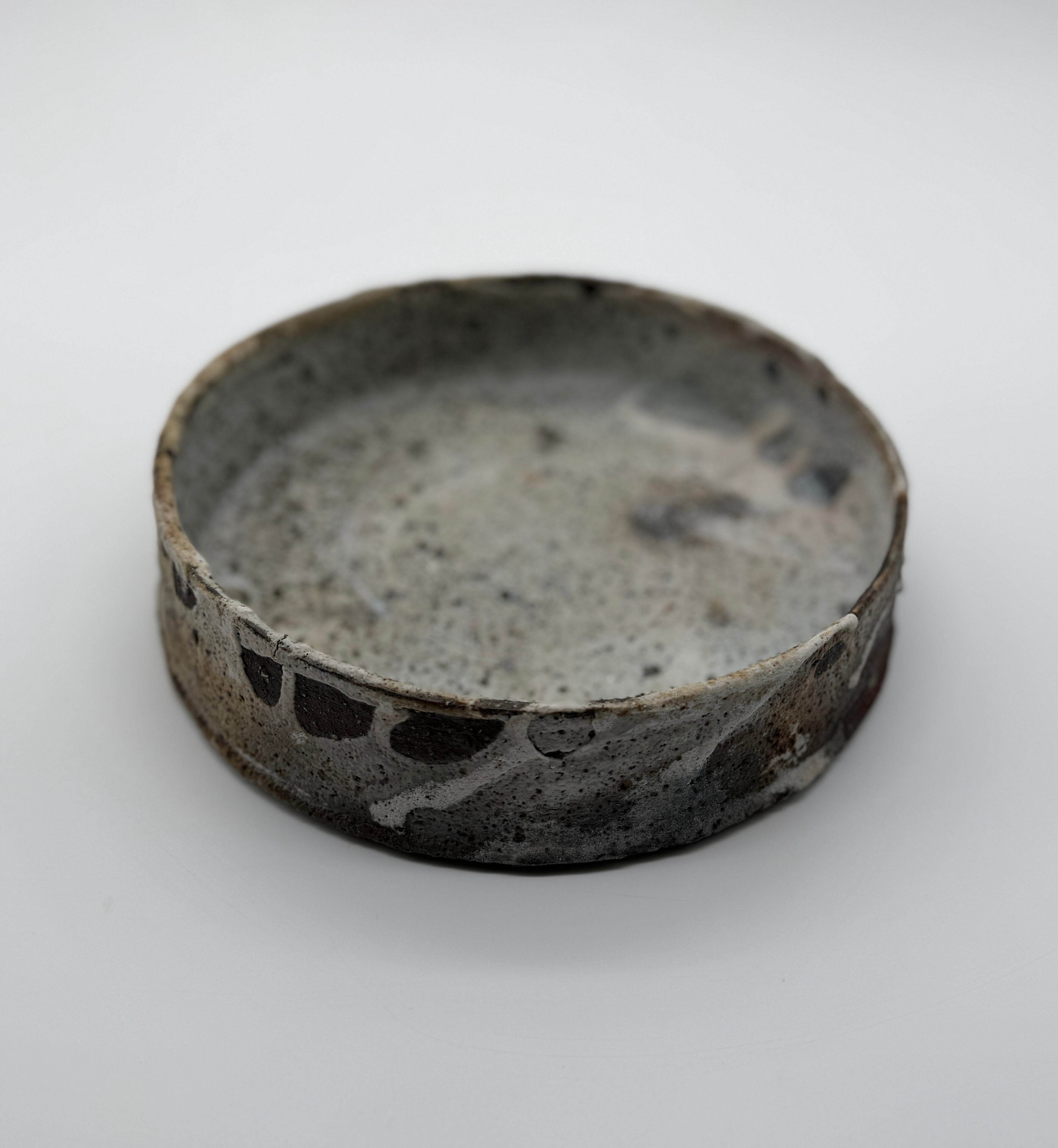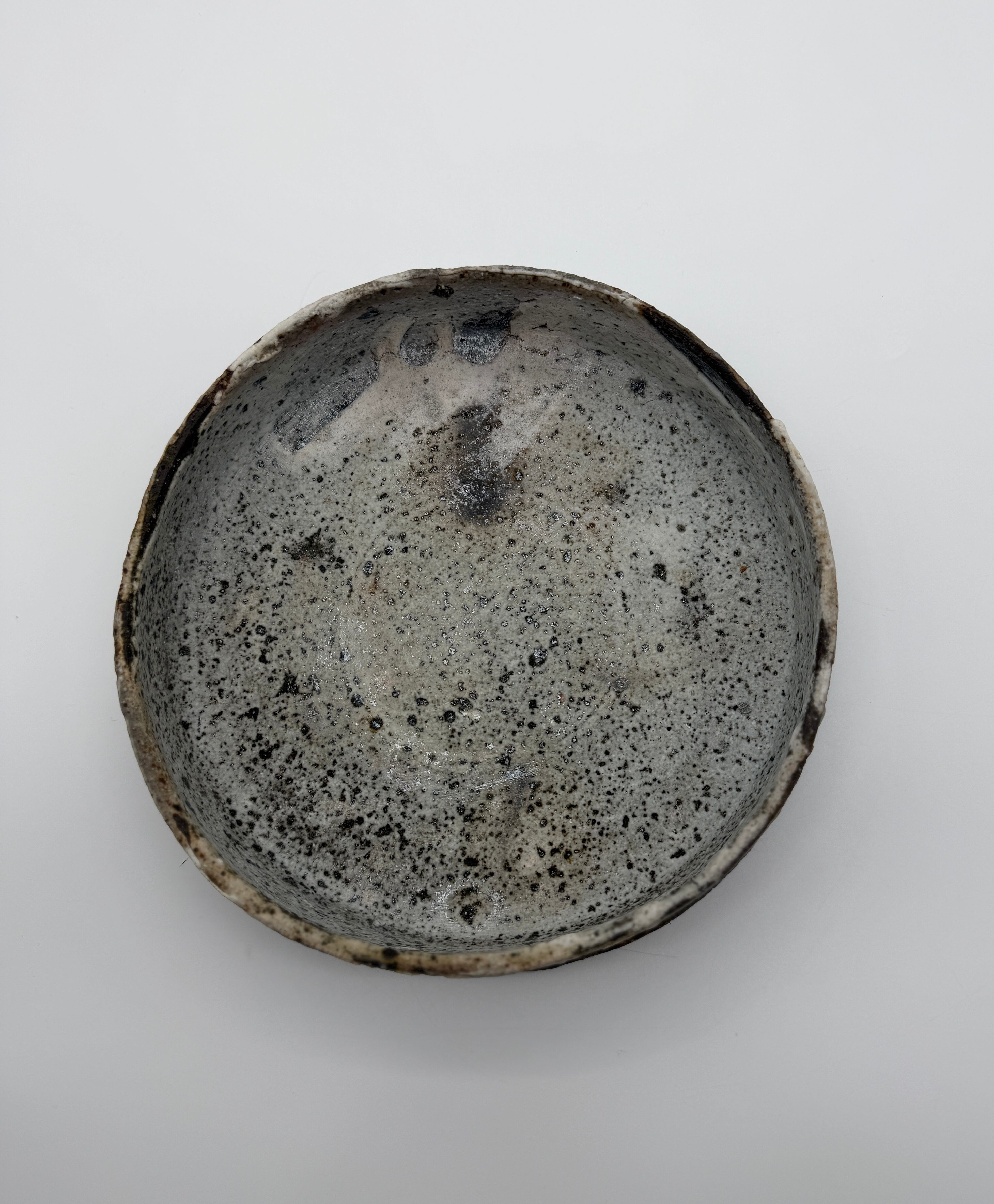 上から見ると丸い鉢でありながら、位置によってはちょっと歪に見えたりと、表情を変える不思議なうつわ。赤い斑点のような色味が浮かび上がっていたり、周りには見る角度により釉薬の垂れ具合で景色が違って見えたりとあきのこない作品です。
