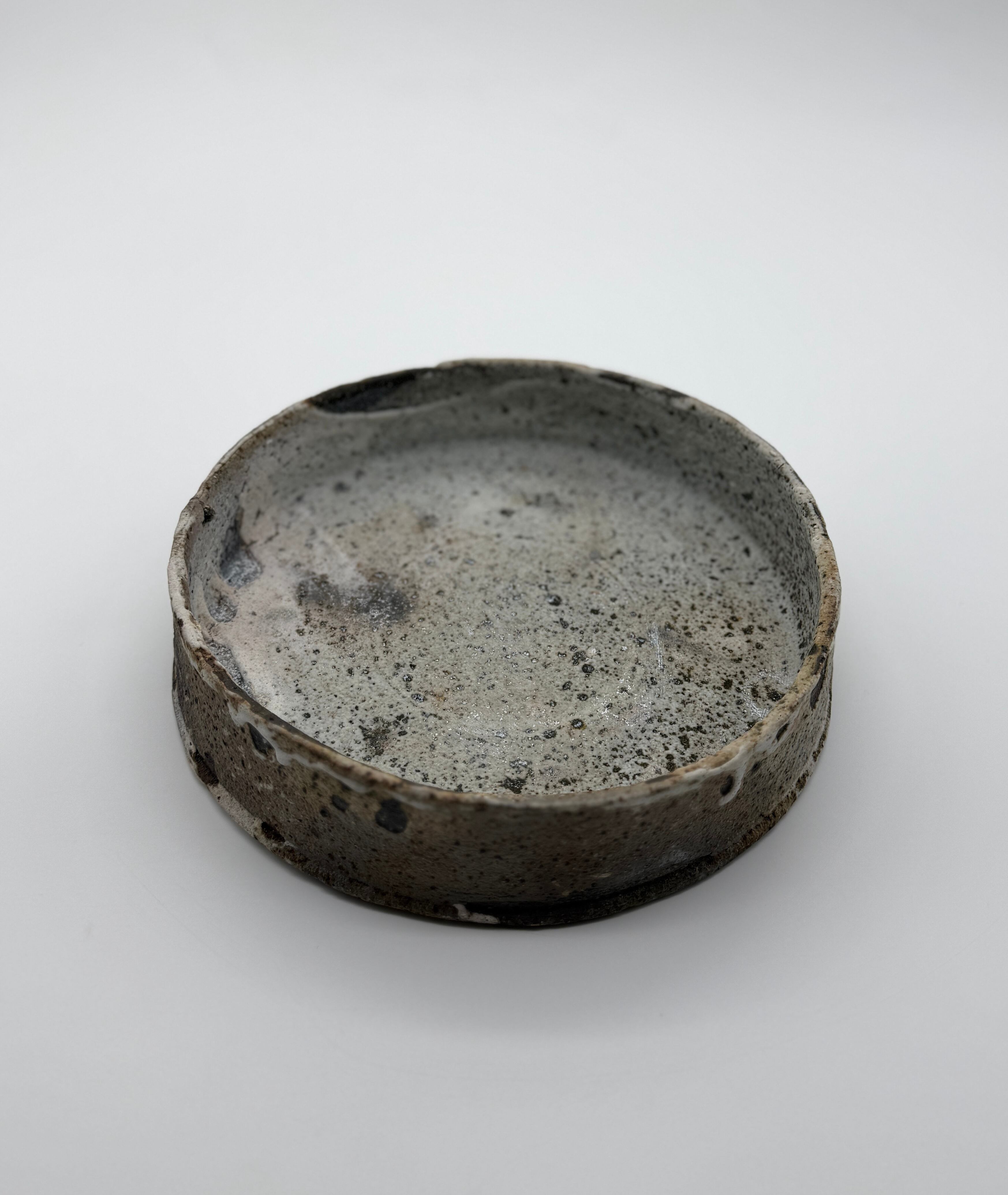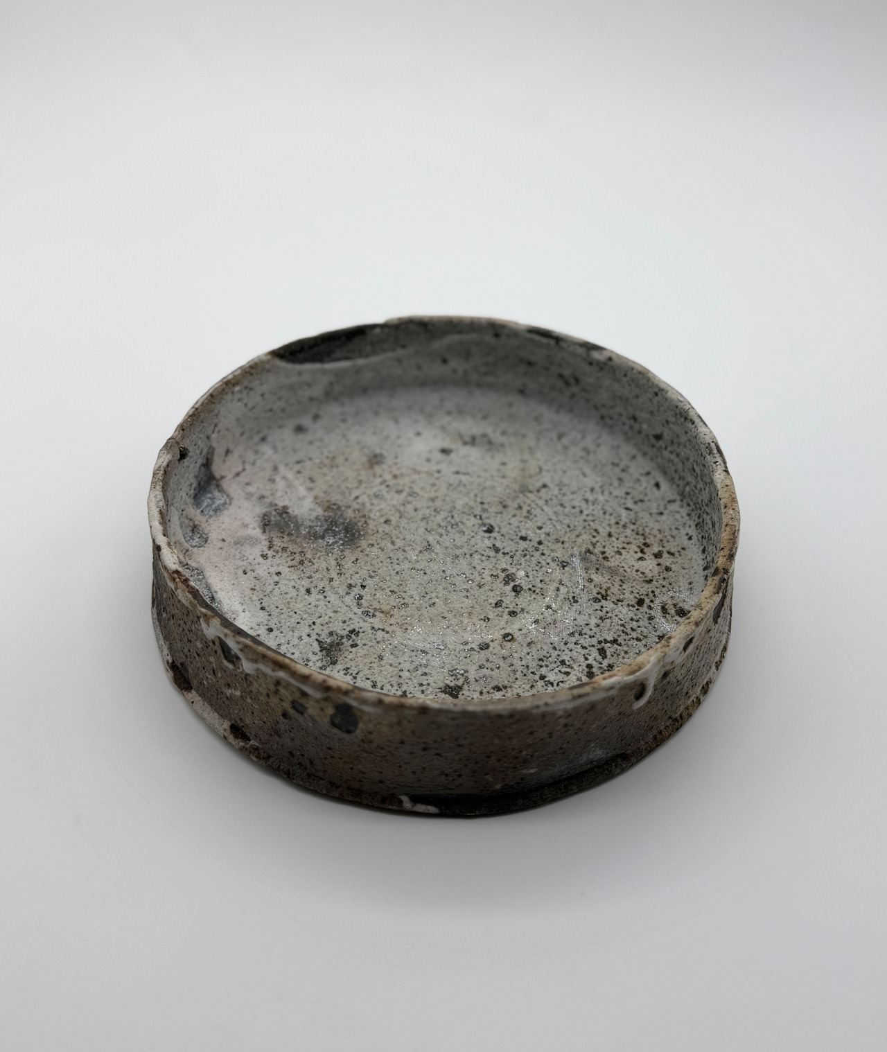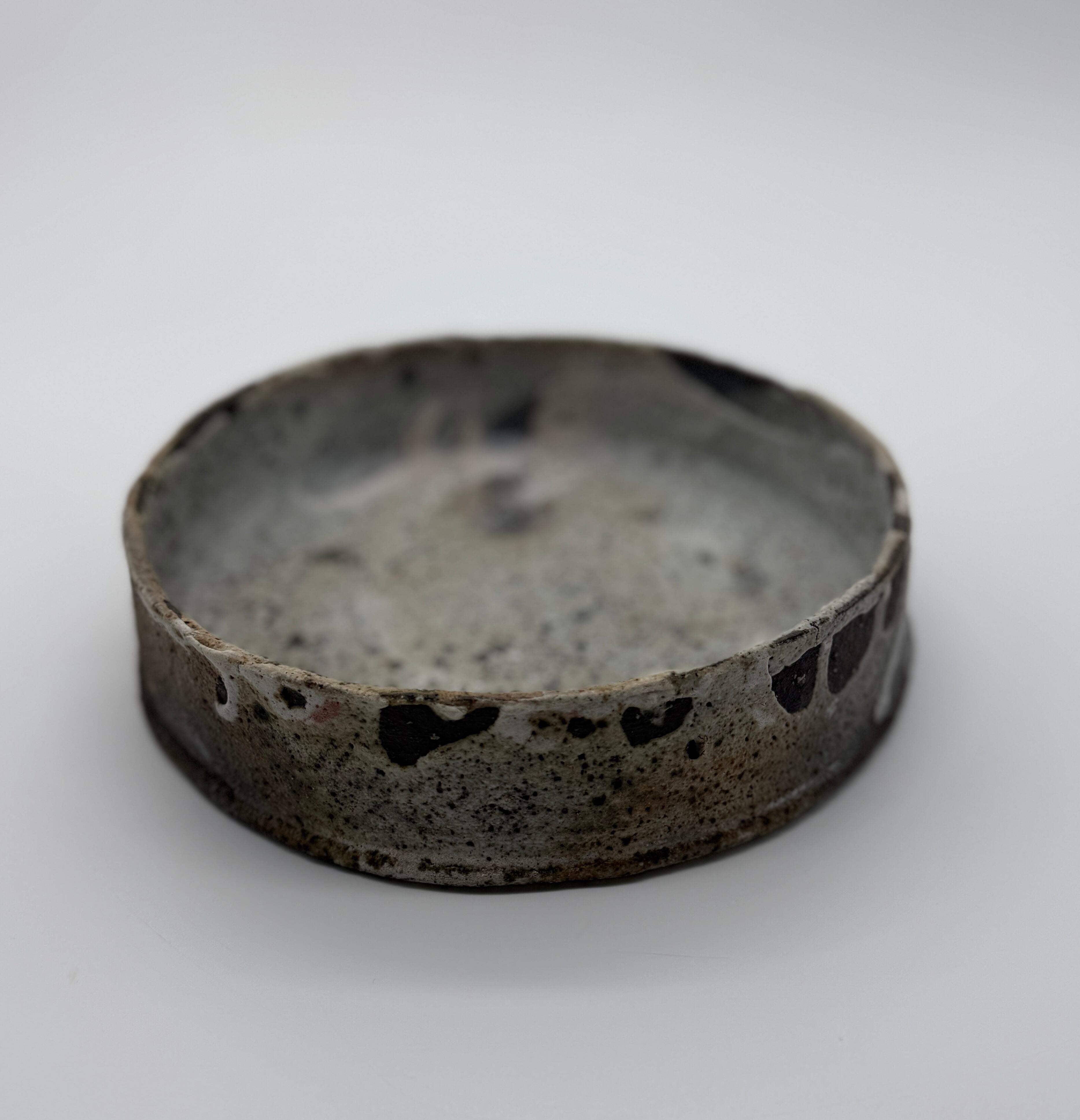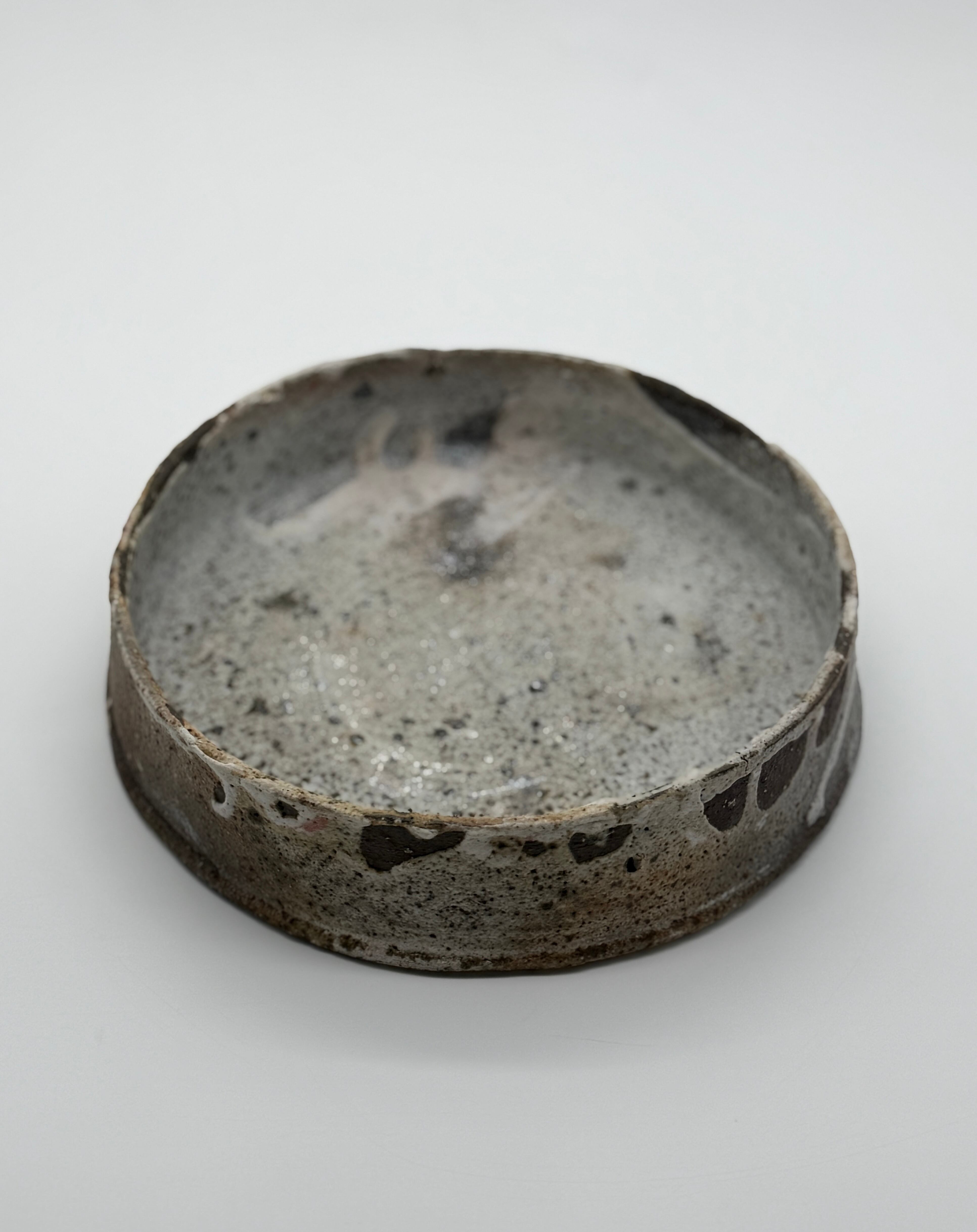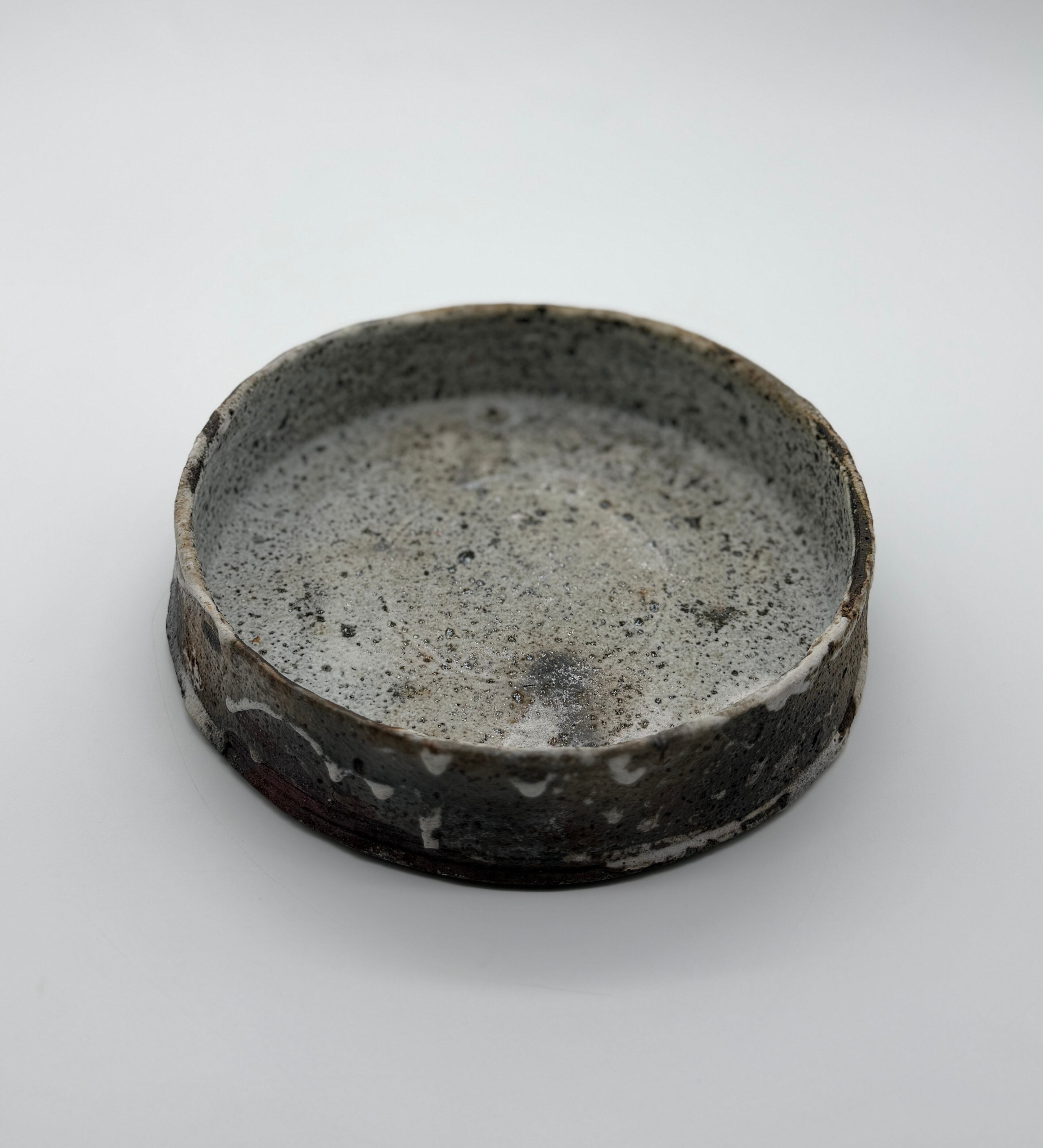 上から見ると丸い鉢でありながら、位置によってはちょっと歪に見えたりと、表情を変える不思議なうつわ。赤い斑点のような色味が浮かび上がっていたり、周りには見る角度により釉薬の垂れ具合で景色が違って見えたりとあきのこない作品です。