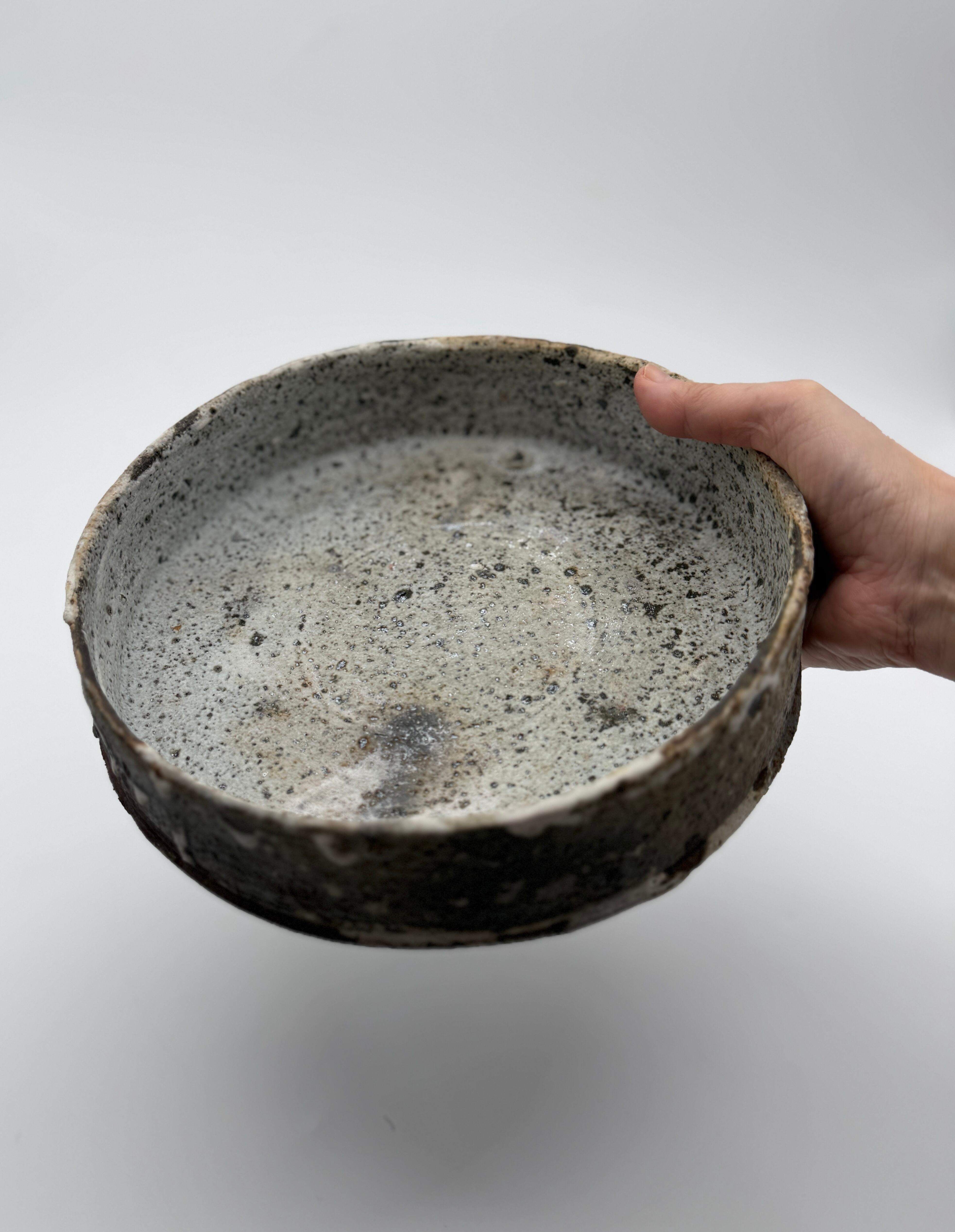 ゴツゴツザラっとした伊賀の土に、灰色の釉薬がかかった大鉢です。